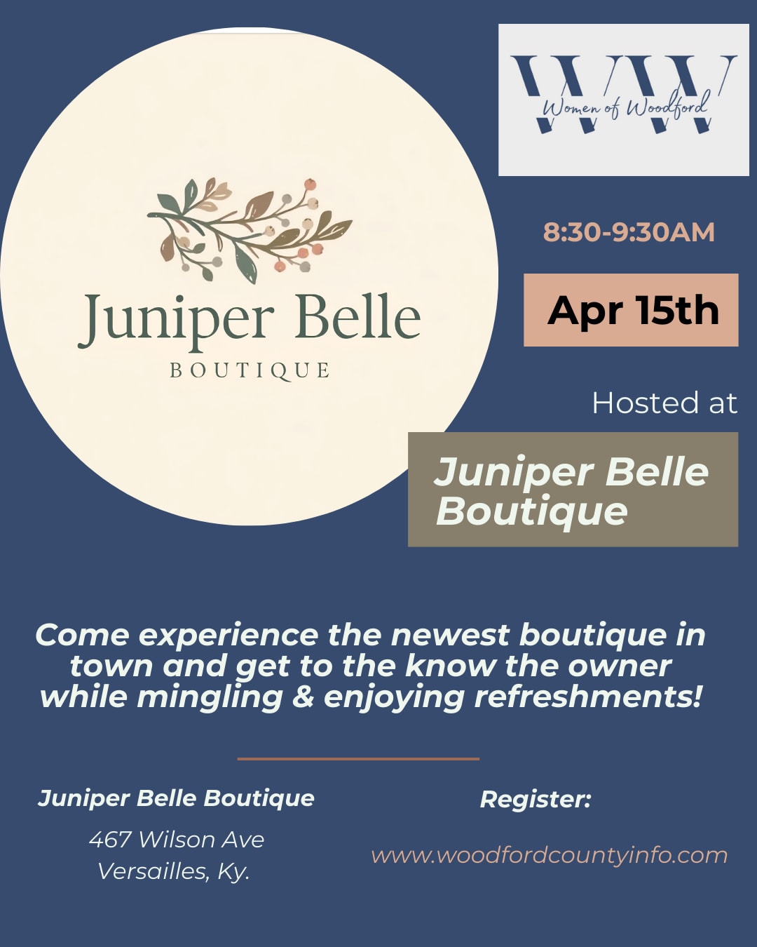 Come experience the newest boutique in town and get to the know the owner while mingling & enjoying refreshments!