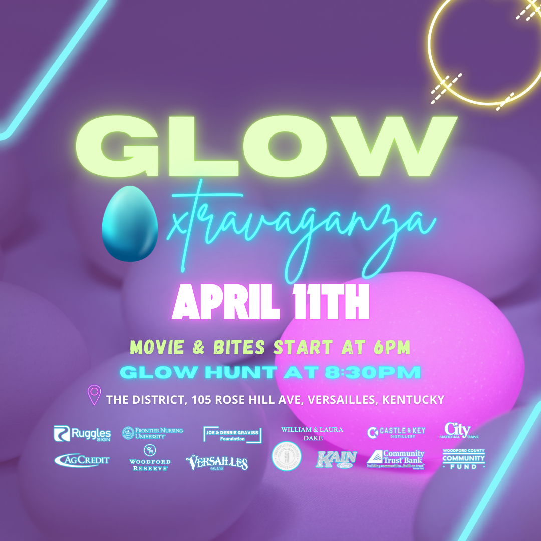 Hop into an unforgettable evening at our Glow Eggxtravaganza! Kick off will begin at 6PM with light bites (more info to come) and a showing of the fun-filled movie HOP. Once the sun sets, the eggcitement continues as the Glow Hunt begins about 8:30PM, lighting up the night with glowing eggs scattered throughout the event area. This year, we've divided the hunt into four age groups: 3-5 years | 6-8 years | 9-11 years | 12-14 years Each group will enjoy loads of candy, exciting prizes, glow accessories, photo area & more! So, bring a blanket and/or a chair and let's celebrate in a magical way with family and friends. LET'S GLOW!