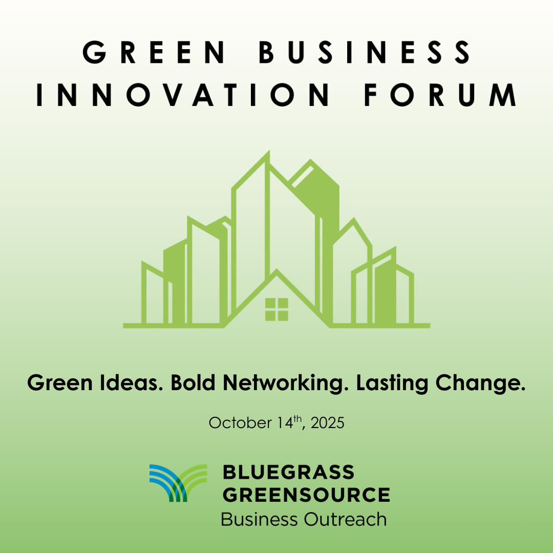 The Forum is designed to spark innovation, build partnerships, and encourage real progress. This premier event will bring together business leaders, sustainability professionals, and community changemakers to explore how green innovation can drive environmental and economic success across Central Kentucky. Please visit https://bggreensource.org/what-we-do/green-business-innovation-forum/ for the full day-of agenda and list of speakers!