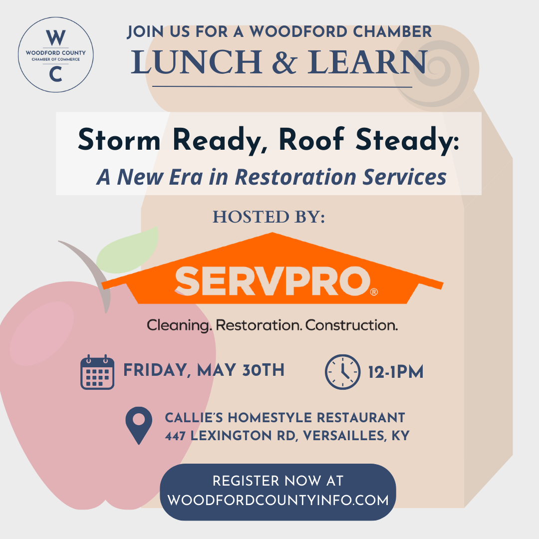 Join us at Callie's Homestyle Restaurant for a complimentary lunch with ServPro and take part in their talk on 'Storm Ready, Roof Steady: A New Era in Restoration Services'!