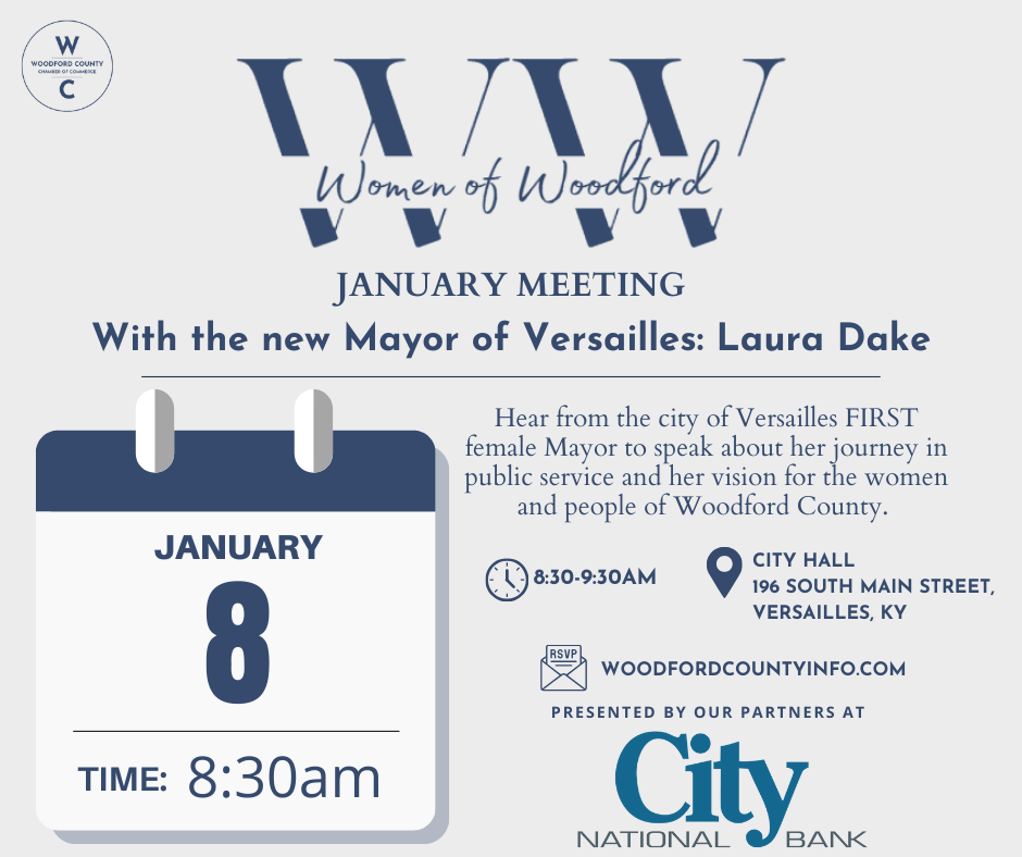 Join us for our Women of Woodford Monthly Meeting every second Wednesday of the month from 8:30-9:30am! Brought to you by our sponsors at City National Bank, Versailles.
