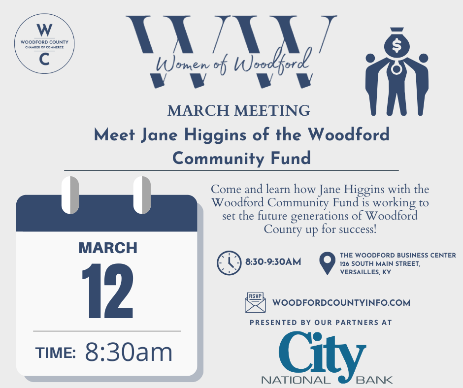 Join us for our Women of Woodford Monthly Meeting every second Wednesday of the month from 8:30-9:30am! Brought to you by our sponsors at City National Bank, Versailles.